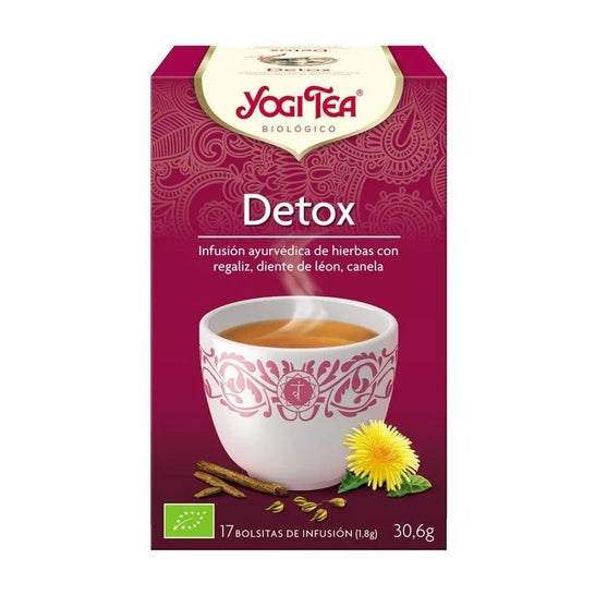 Yogi Tea Detox 17 sachets é uma mistura equilibrada de alcaçuz doce e gengibre picante com dentes-de-leão e raiz de bardana. A soma de cardamomo, coentro, sálvia e funcho completam esta famosa e saborosa infusão.