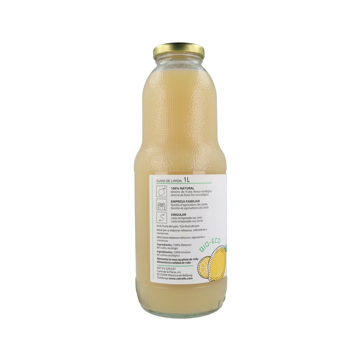 Este produto contém apenas sumo de limão totalmente natural e orgânico, feito diretamente com limões nacionais. É pasteurizado e recomenda-se conservar entre temperaturas de 0 e 3 graus Celsius. Não contém aditivos nem conservantes, nem é proveniente de concentrado. Não foram utilizados produtos químicos de síntese na produção ou cultivo, uma vez que a Cal Valls procura proteger a saúde dos consumidores e o meio ambiente. É um sumo artesanal feito com limões frescos, que fornecem vitamina C e funcionam como antioxidantes, pois retardam o envelhecimento. O processo de espremer e embalar o sumo é feito em poucos segundos, garantindo a sua qualidade e conservação. Uma vez aberto, conservar no frigorífico. Ideal para consumir a qualquer momento do dia. Adequado para veganos e vegetarianos. Produto recomendado para a saúde.