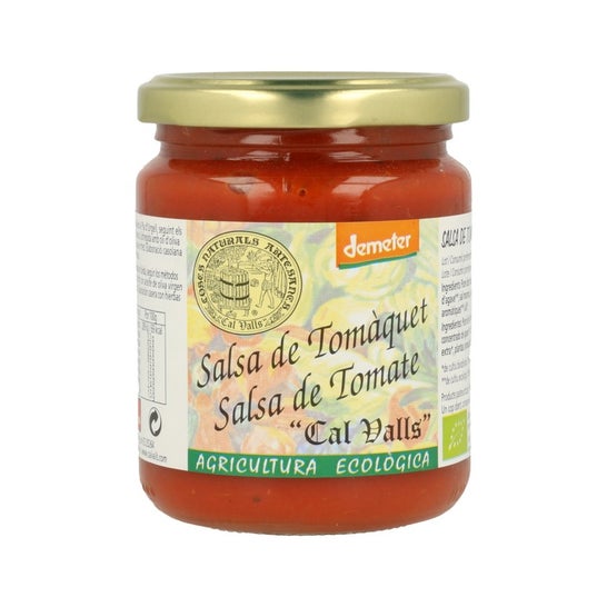 Molho de tomate natural Cal Valls. Contém 270g de produto na embalagem. Com ingredientes provenientes da agricultura biológica. É uma fonte importante de vitamina C que contribui para o correto funcionamento do sistema imunitário. Ajuda a melhorar os processos digestivos do corpo. Auxilia no processo de dissolução de cálculos biliares. É baixo em sódio, o que permite reduzir os níveis de hipertensão. Diminui a quantidade de triglicéridos e colesterol no organismo. Recomendado para utilizadores sob um regime alimentar baseado no consumo de produtos orgânicos. Ideal para adultos mais velhos e crianças em crescimento. Manter a embalagem fora do alcance das crianças. Não é sugerido ingerir em quantidades superiores às indicadas. Em caso de reações adversas às esperadas, é recomendável consultar o médico ou nutricionista de confiança.