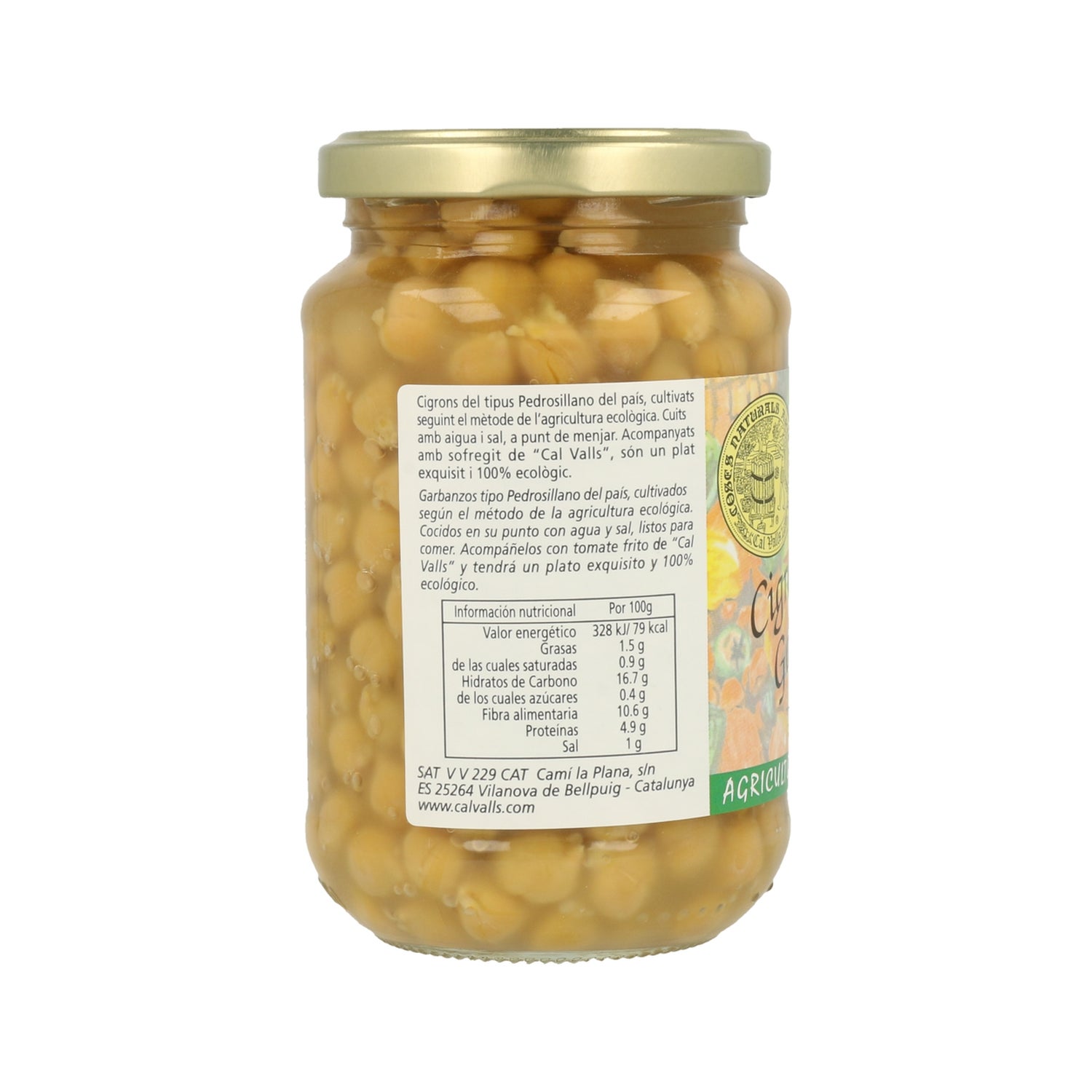 Tenros grão-de-bico cozidos da Cal Valls, cultivados com agricultura biológica e produzidos através de processos 100% artesanais. Este produto vem numa prática embalagem de 220g, em frasco de vidro, pensada para preparações rápidas quando não se tem muito tempo para cozinhar. Os grão-de-bico da Biocop são livres de glúten e prontos a comer acompanhados de arroz, saladas ou como ingrediente adicional em diferentes receitas. Os grão-de-bico são ricos em fibra, vitaminas C e B6 e potássio, elementos que protegem o coração de doenças e baixam os níveis de colesterol. A este grão são atribuídas qualidades como a perda de peso, fortalecimento dos ossos, regulação da digestão e circulação. Também são muito úteis ao manter a pressão arterial em níveis normais e facilitar o trânsito intestinal. São recomendados para acompanhar refeições e jantares e desfrutar em família.