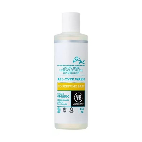 Shampoo sem perfume para todo o corpo do bebê. Os bebês não precisam de uma limpeza superprofunda e áspera. Apenas os tensioativos vegetais mais suaves são adequados para a delicada pele.