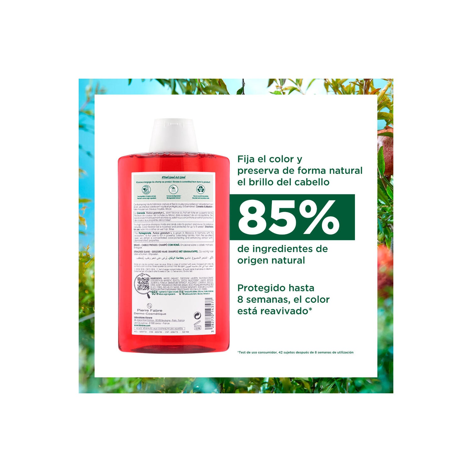 A cor durará mais tempo e terá um aspeto mais radiante se lavar o seu cabelo diariamente com o champô de romã Klorane. A romã confere ao seu cabelo um aspeto mais luminoso e suave, para que possa desfrutar da cor a 100% .