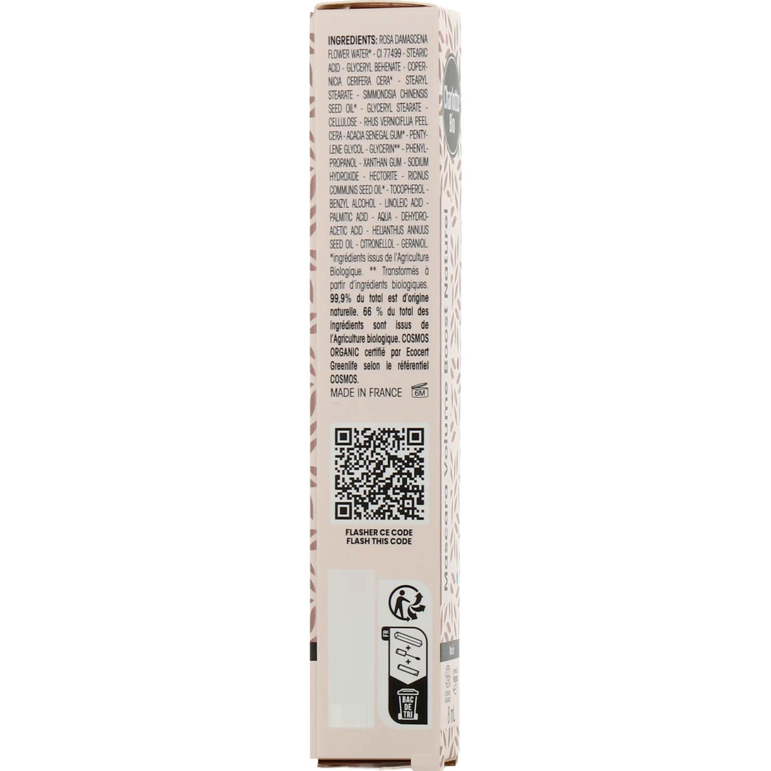 Charlotte Bio Máscara Volume Boost Naturel Black 8ml é um produto que se destaca por sua fórmula ecológica e natural, composta em 99,99% de ingredientes de origem natural, dos quais 66% provém da agricultura ecológica. Este rímel é certificado como vegano e conta com acreditações de Cosmebio e Ecocert, o que garante seu compromisso com o meio ambiente e sua elaboração sem testes em animais, conforme a normativa europeia.