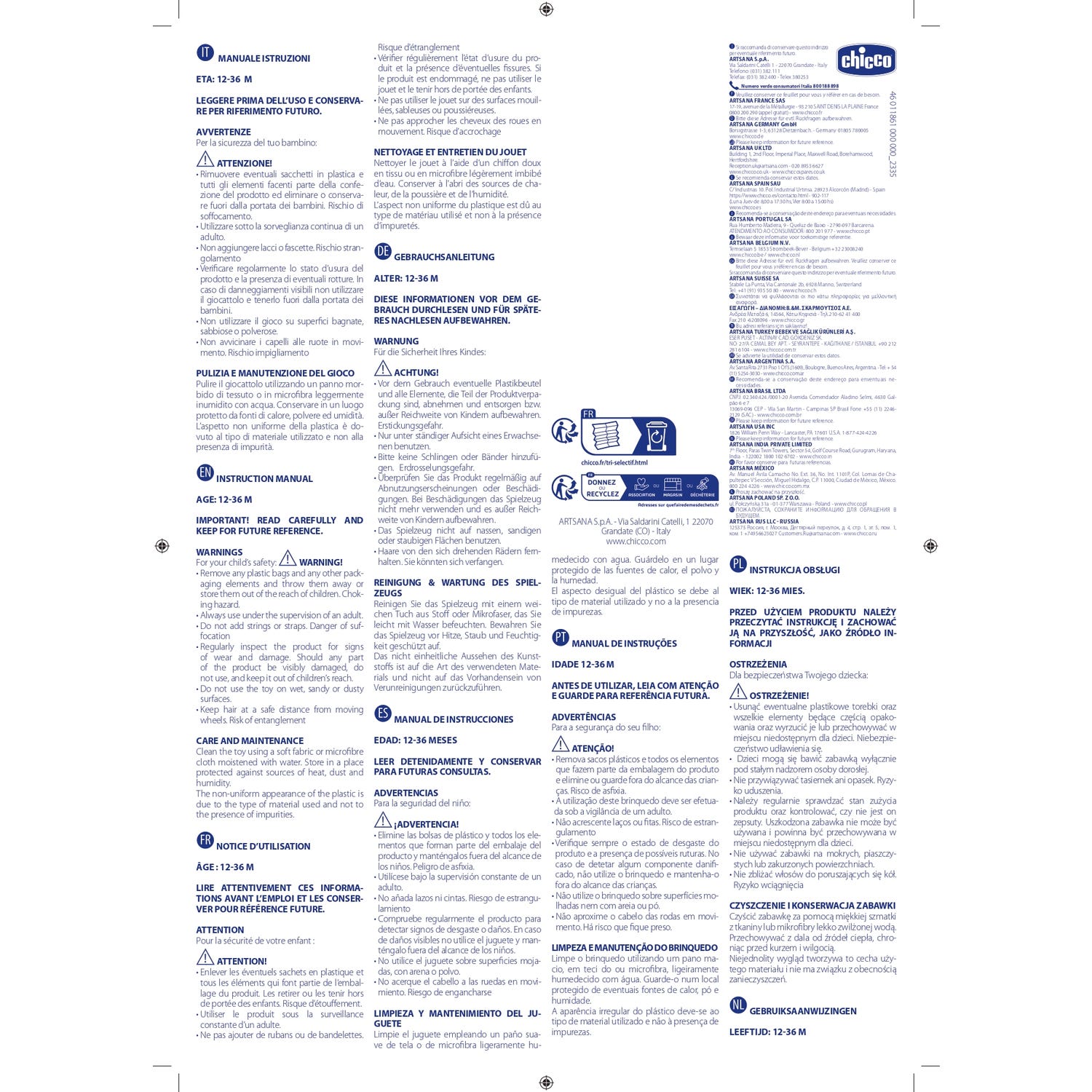 Além disso, o Chicco Eco+ Brinquedo Croco Puxa e Anda é fabricado com 55% de plástico reciclado, obtido de resíduos industriais, o que reflete um compromisso com a sustentabilidade. As caixas em que o produto é apresentado são recicláveis e são feitas com papel certificado pelo FSC®, contribuindo para a proteção das florestas e da biodiversidade.