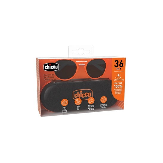 Chicco Óculos de Sol com Caixa Menino 36M+ Laranja é um acessório essencial para a proteção ocular dos mais pequenos. Este produto garante uma absorção total dos raios UVA e UVB, cuidando assim dos olhos delicados dos bebês.