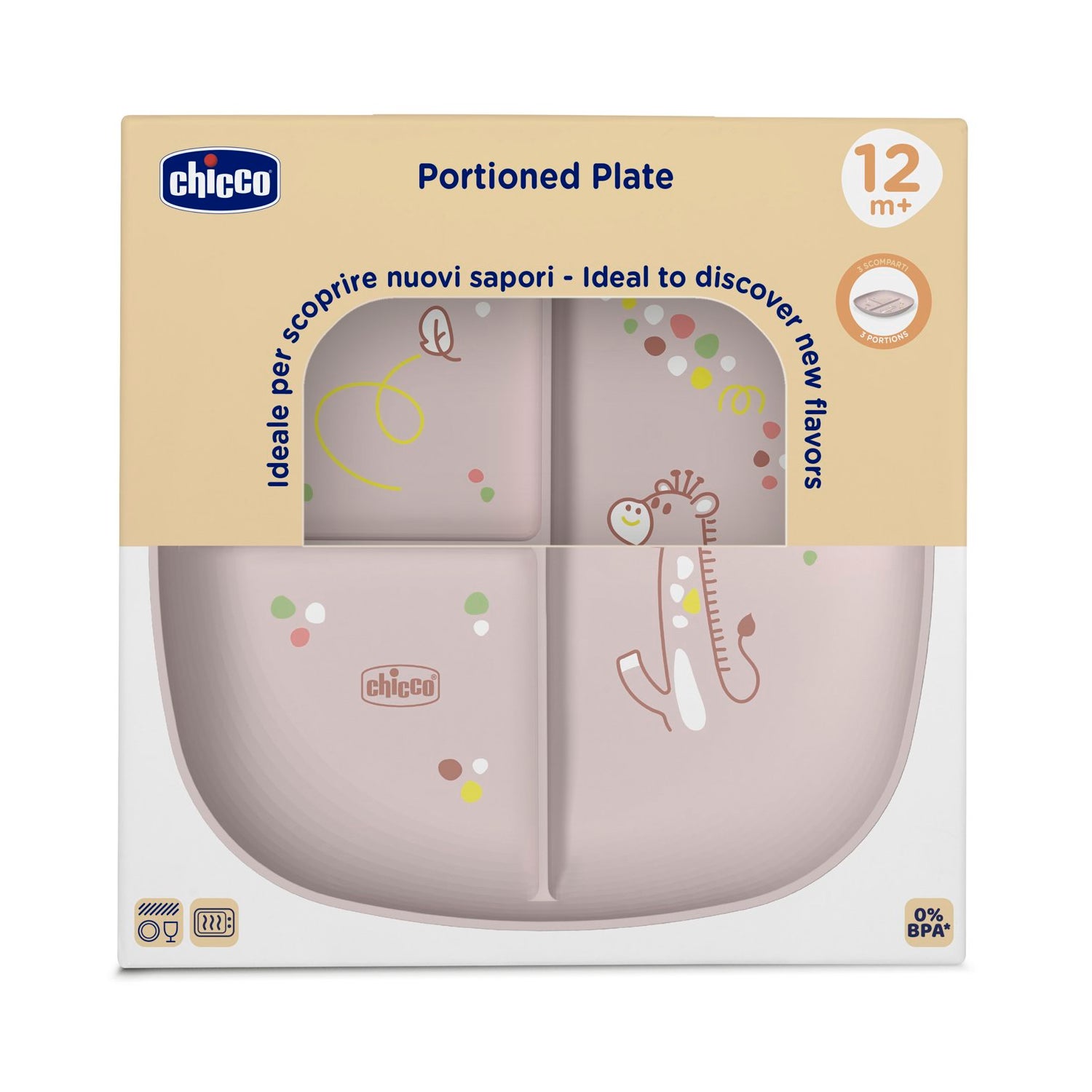 Chicco Prato com Compartimentos 12M+ Rosa 1ud é um utensílio projetado especialmente para bebês a partir de 12 meses, oferecendo máximo conforto para promover a alimentação independente.