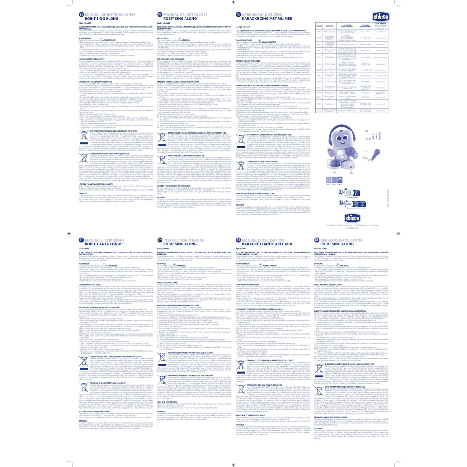 O Chicco Robit Canta Comigo inclui três vozes divertidas que apresentam efeitos de distorção, o que estimula a criatividade e o jogo imaginativo. Seu design facilita o transporte, permitindo levá-lo a qualquer lugar para desfrutar da música e do canto em companhia.