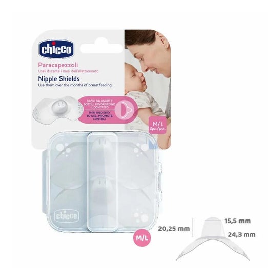 Chicco Skintoskin T Silicone Mamilo Protectores de mamilos Grandes protecções de mamilos de silicone para proteger o peito e facilitar a amamentação. A sua forma e espessura extra-finas facilitam a transmissão da temperatura e odor do peito. Permitem o máximo contacto do nariz e queixo do bebé com a pele do peito, maximizando assim as sensações tácteis e olfativas que caracterizam o aleitamento materno.
