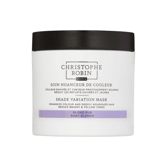 Christophe Robin Shade Variation Care Baby Blond é uma máscara enriquecida projetada para ajudar na recuperação da cor do cabelo. Este produto permite refrescar e prolongar a duração da cor, evitando que apareçam tons amarelos e acobreados.