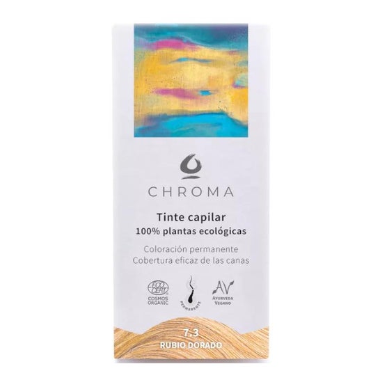 Chroma Tinte Bio 7.3 Loiro Dourado 100g é um tintura capilar vegana, elaborada com 100% de plantas ecológicas. Proporciona uma cor intensa e duradoura, cuidando do cabelo, ao mesmo tempo que o ilumina e contribui para cobrir os cabelos brancos.