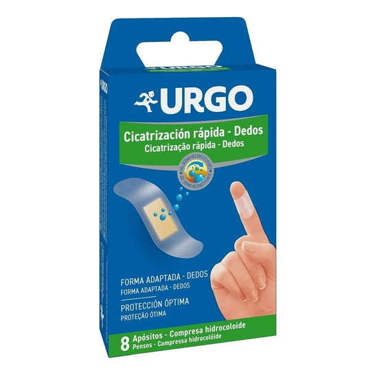 Urgo Rapid Healing Finger Dressings 8 pensos ajudam a proteger as feridas superficiais dos dedos de uma forma óptima e segura. Contêm um gel dermo-restaurador que promove a cicatrização e ajuda a aliviar a dor rapidamente.