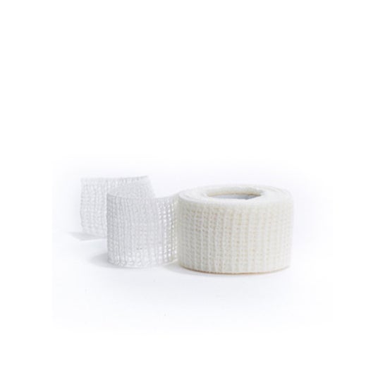 Venda monoelástica autoadesiva para fixação. Produto especialmente indicado para a fixação de curativos articulares, bandagens de fixação leves e no tratamento de fracturas leves. O design e o material não requerem clipes nem remendos, uma vez que possui zonas autoadesivas. É elaborado com 42% algodão, 29% viscose, 29% poliamida. O adesivo é de látex hipoalergénico.
