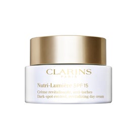 Clarins Nutri-Lumière Jour Spf15 é um creme facial que proporciona uma ação tripla contra as manchas e um efeito antienvelhecimento integral, especialmente formulado para peles desnutridas. Este tratamento reconfortante e cremoso foi projetado para revitalizar e nutrir intensamente a pele.
