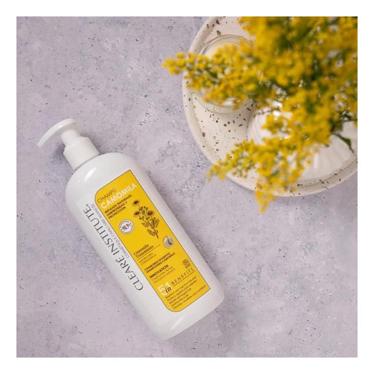 O Champô de Camomila Clearé Institute 400ml ajuda a reavivar as madeixas naturais e proporciona proteção e brilho ao cabelo. Além disso, proporciona os seguintes benefícios: ilumina o cabelo desde o início, protege contra a radiação solar, repara o cabelo danificado, acalma o couro cabeludo e limpa, nutre e condiciona o cabelo.