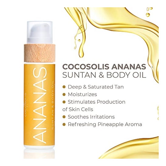 Cocosolis Ananas Suntan & Body Oil 110ml é um óleo orgânico que ajuda a hidratar a pele e ajuda a pele a bronzear-se rapidamente.
