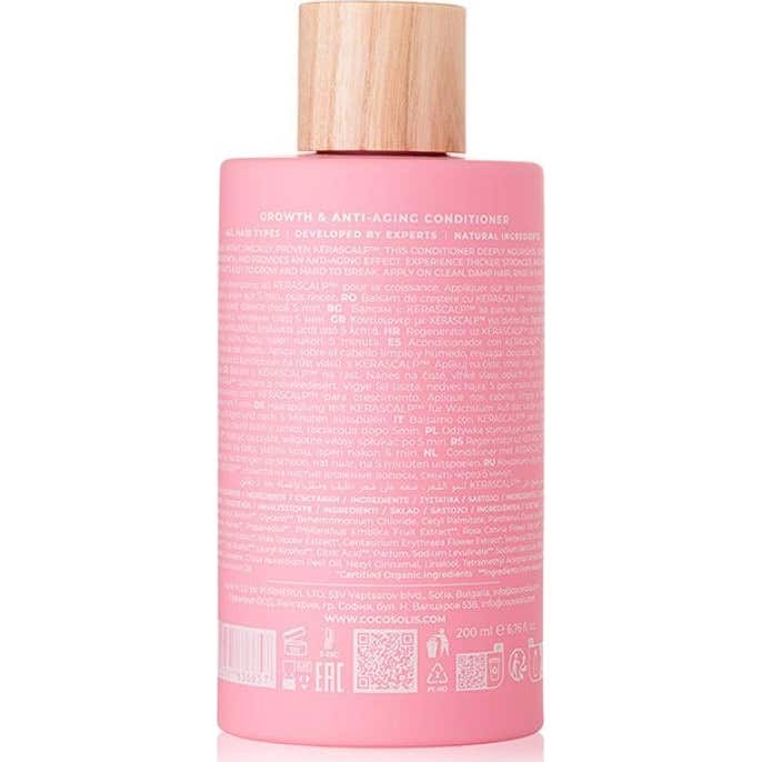 Cocosolis Grow Hair Growth Condicionador 200 ml é um produto projetado para o cuidado do cabelo após a lavagem. Sua função principal é fechar a cutícula capilar, o que ajuda a restaurar a estrutura do cabelo e a mantê-lo em ótimas condições. Este condicionador proporciona nutrição e hidratação essenciais, garantindo um cabelo brilhante e saudável.