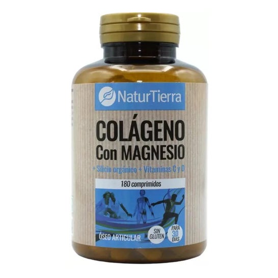 Naturtierra Collagen With Magnesium 180 Tablets é um suplemento alimentar feito de colagénio hidrolisado, minerais, vitaminas e espécies vegetais.