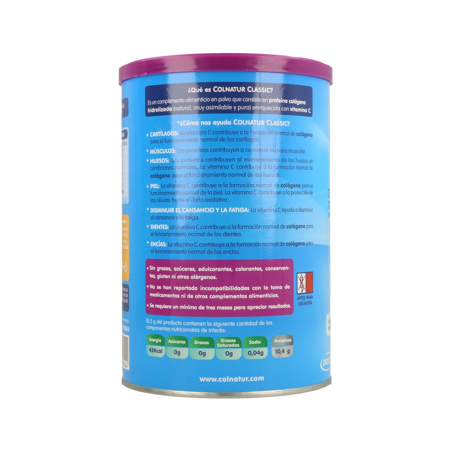 Colnatur® Classic Sabor Frutas do Bosque 315g é um suplemento composto por proteína pura hidrolisada de colágeno e vitamina C, fornecendo diariamente os aminoácidos de colágeno que o corpo precisa para se proteger do envelhecimento.