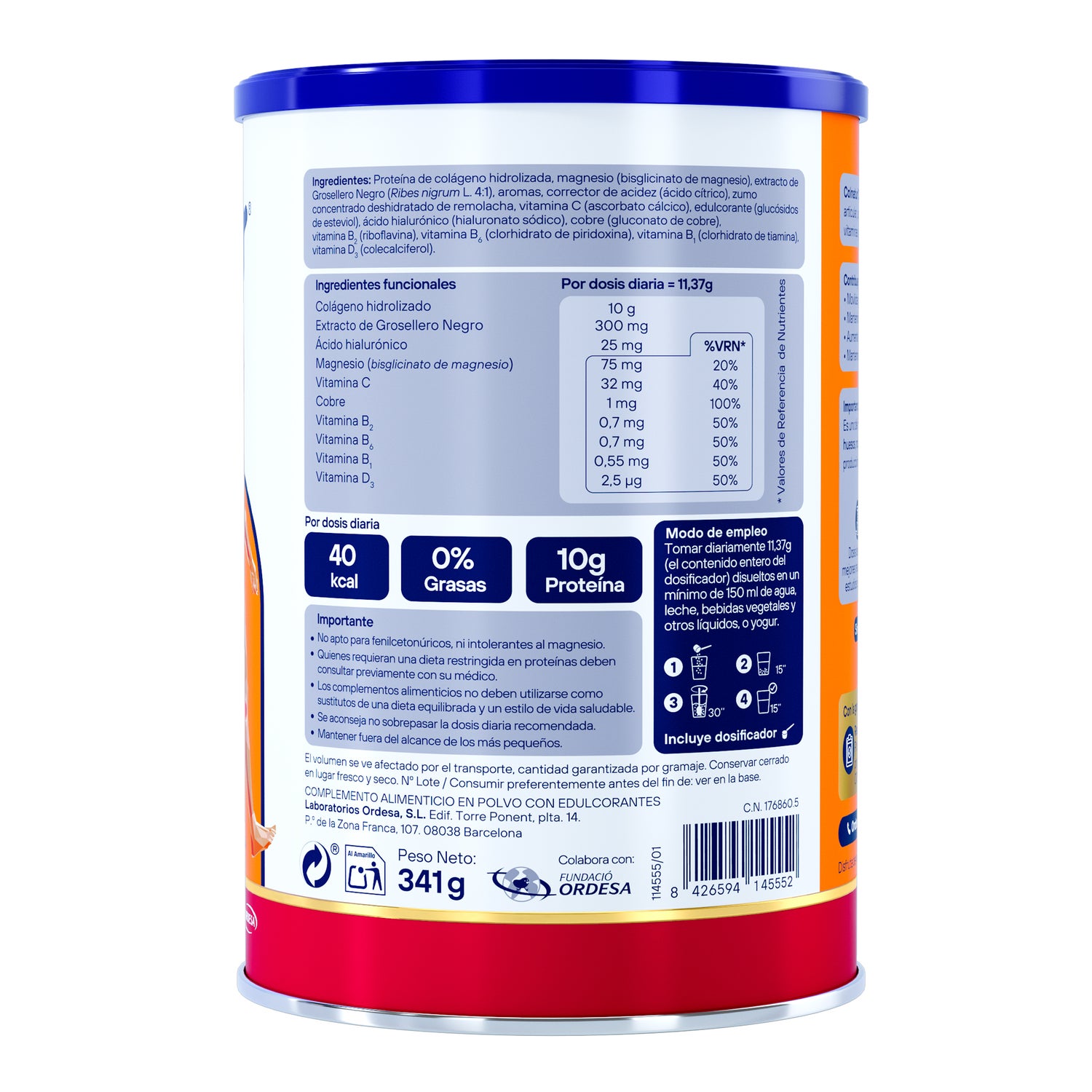 Sabor neutro: PROTEÍNA DE COLAGÉNIO HIDROLIZADO, CITRATO DE MAGNÉSIO, VITAMINA C, ÁCIDO HIALURÓNICO.