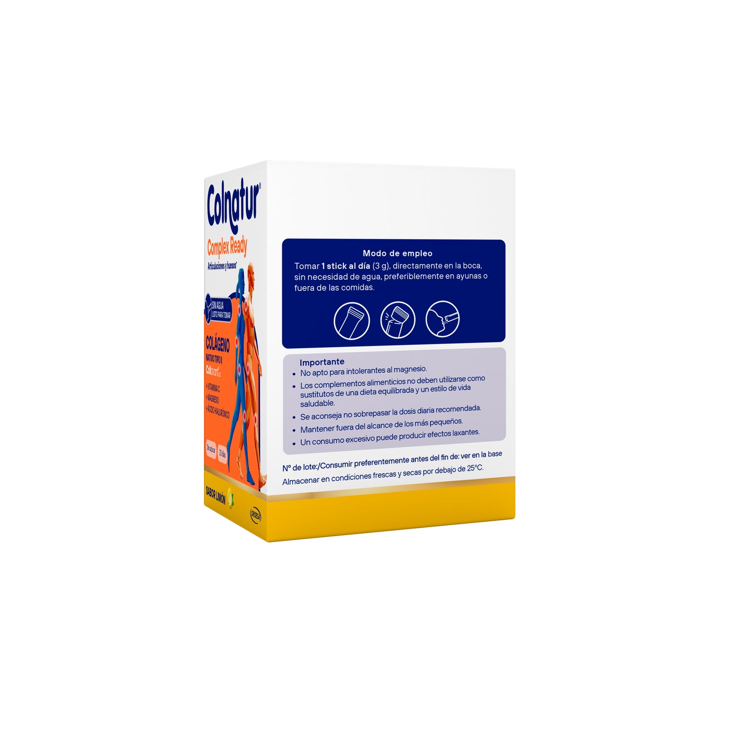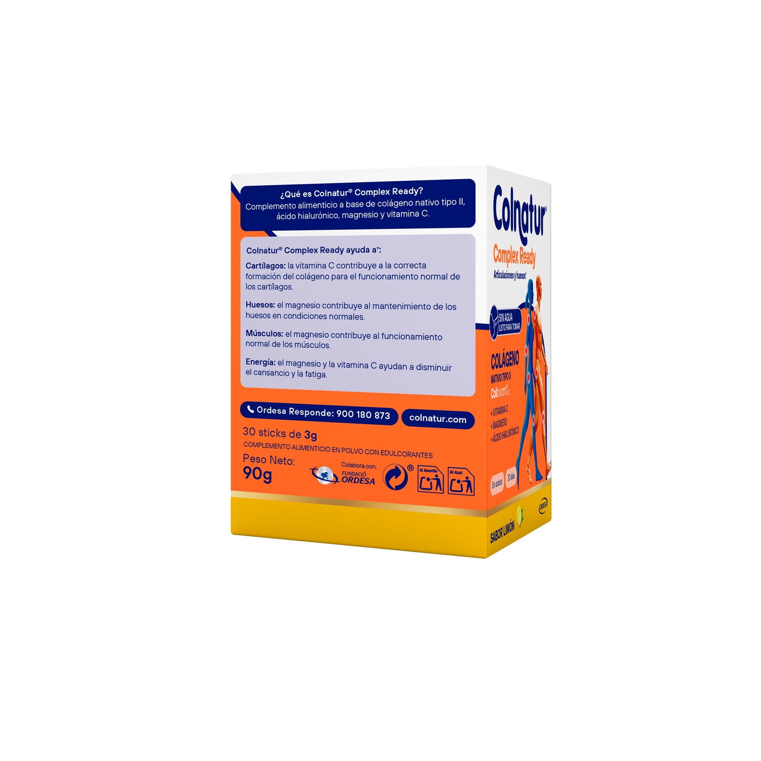 Colnatur® Complex Ready Sabor Limão 30x3g é um complemento alimentar projetado para favorecer o cuidado das articulações, dos ossos e dos músculos.