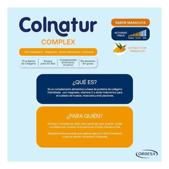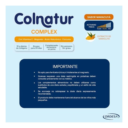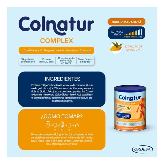 Colnatur® Complex Cúrcuma e Maracujá 250g é um complemento alimentar que contribui para o bom funcionamento dos músculos, ossos, cartilagens e o envelhecimento da pele, além de ajudar a diminuir a fadiga.
