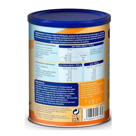 Formulado à base de proteína de colágeno hidrolisada (natural, muito assimilável e pura). É útil para as cartilagens, graças à vitamina C. Também para os músculos, pelo seu aporte em magnésio. Os ossos e a pele se beneficiam pelas proteínas e o magnésio, assim como pela vitamina C. Por fim, também pela ação do magnésio e da vitamina C que ajudam a diminuir o cansaço e a fadiga.