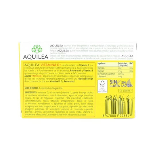 Aquilea Vitamina D+ 30comp é um suplemento alimentar à base de vitamina D3, vitamina E e resveratrol especialmente concebido para ajudar a manter os ossos, músculos e defesas. Protege contra danos oxidativos.