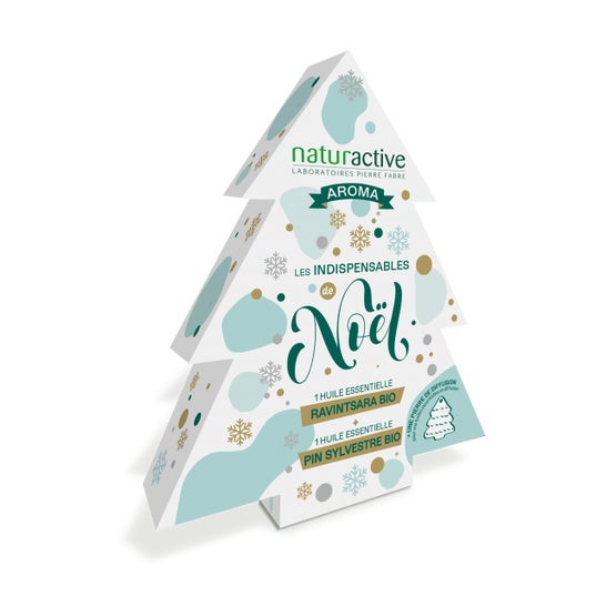 Embalagem de oferta composta por uma pedra difusora de Natal com duas unidades de óleos essenciais orgânicos com um agradável aroma de Ravintsara e pinheiro silvestre. O kit é apresentado numa caixa original na forma de uma árvore de Natal, que surpreenderá a pessoa que o receber.