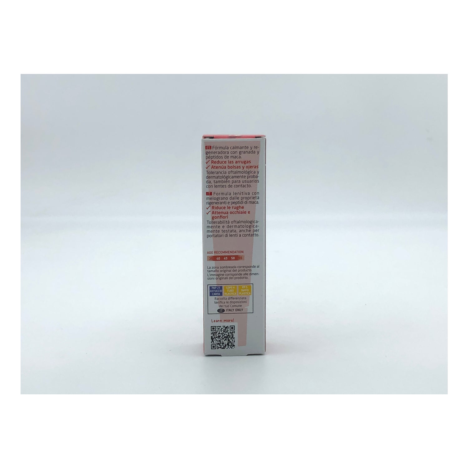 A sua fórmula rica em Extrato de Romã combate os sinais de envelhecimento, atenuando as rugas e linhas de expressão na zona periocular. Além disso, é fabricado com ingredientes naturais e é vegan.