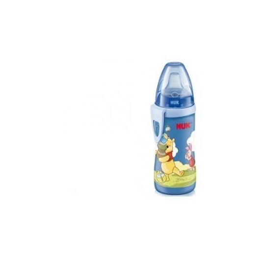 Nuk Active Cup Winnie The Pooh Silicone Feeding Bottle 300 Ml é um produto leve, fabricado em polipropileno resistente e isento de substâncias nocivas, inodoro e sem BPA.