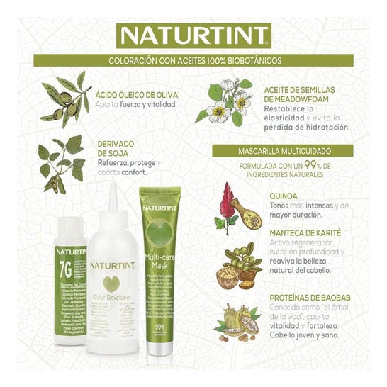 Naturtint Tinte 6N Loiro Escuro é uma coloração permanente para dar cor de forma natural e pouco invasiva ao cabelo. Não contém amônia e proporciona suavidade, brilho, hidratação e conforto ao couro cabeludo.