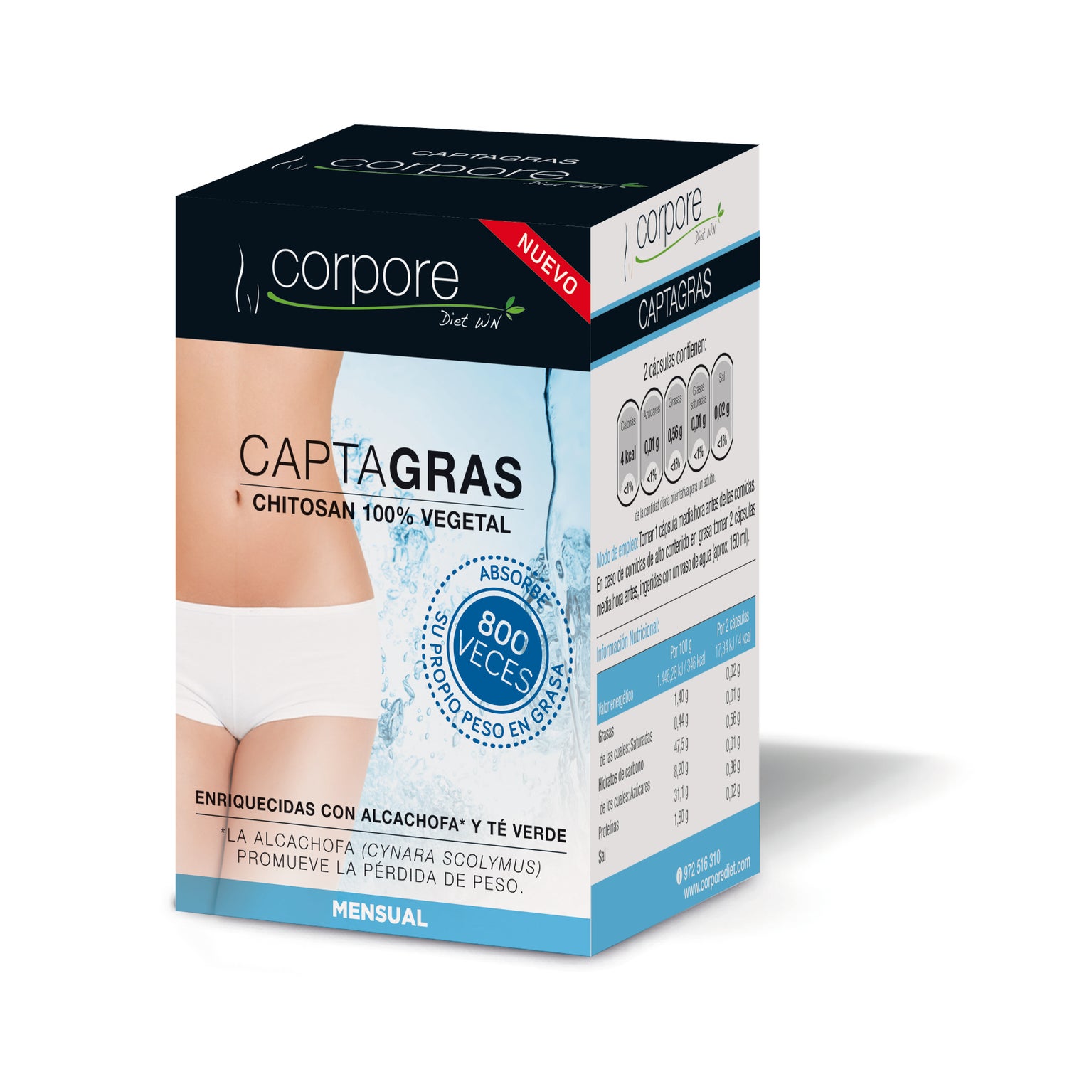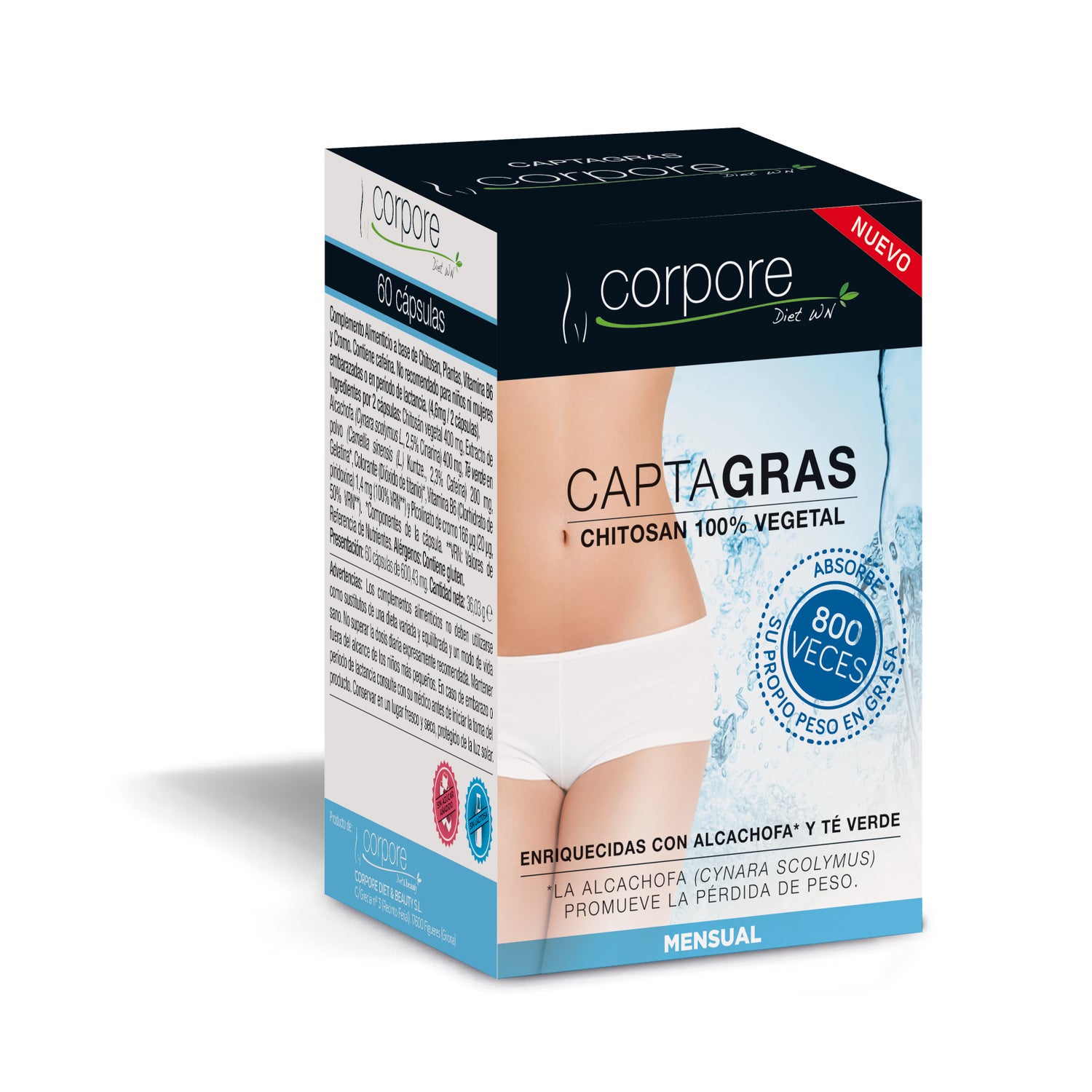 As cápsulas de Captagras contêm um componente 100% natural, o Quitosano, que é indicado para as pessoas que estão em dieta e/ou perda de peso. Graças a um dos seus componentes, a Alcachofra, contém propriedades a perder, uma vez que tem uma acção depurativa, diurética e metabólica. Além disso, também tem propriedades ideais para queimar gordura e reduzir o inchaço, ajudando-o a expelir líquidos retidos.