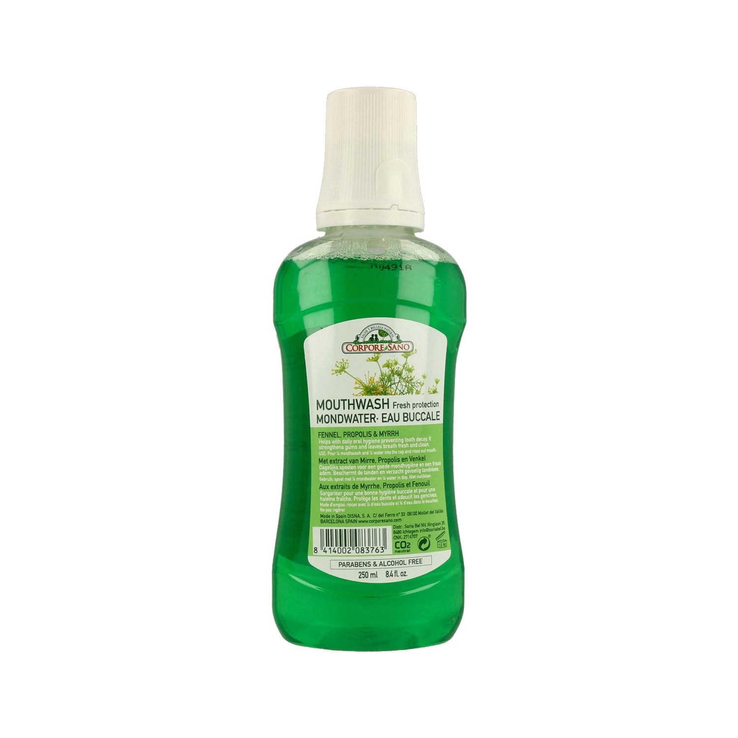 Lavagem bucal feita com extractos de mirra, própolis e funcho, que ajuda a reduzir a formação de placa bacteriana. Com uma fórmula anti-séptica que ajuda a higienizar a boca e áreas de difícil acesso, tais como espaços interdentais. Enriquecido com ingredientes activos calmantes que ajudam a proteger o esmalte dos dentes e a linha das gengivas. Proporciona hálito fresco durante 8 horas e é adequado para uso diário após a escovagem. Livre de glúten, parabenos e álcool. Adequado para adultos e crianças a partir dos 12 anos de idade.