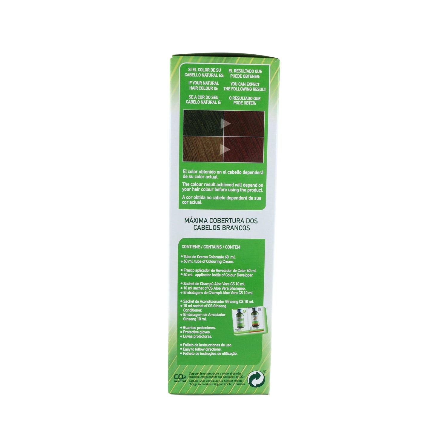 O kit inclui um Tubo de 60 ml de Creme Colorante, um Frasco de 60 ml de Aplicador de Revelador de Coloração, Saquetas de 10 ml de Champô Aloé Vera CS e Condicionador Ginseng CS, luvas de proteção e instruções detalhadas de utilização.