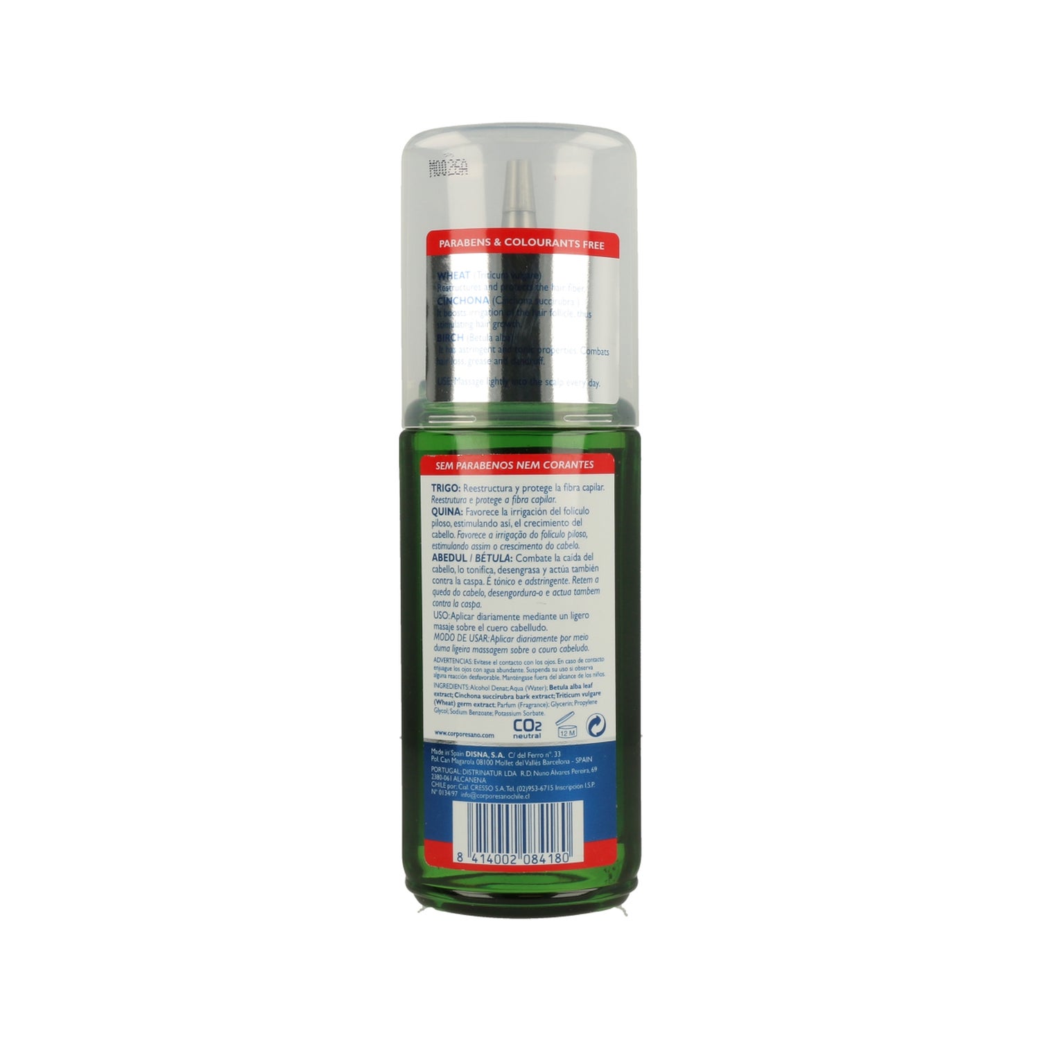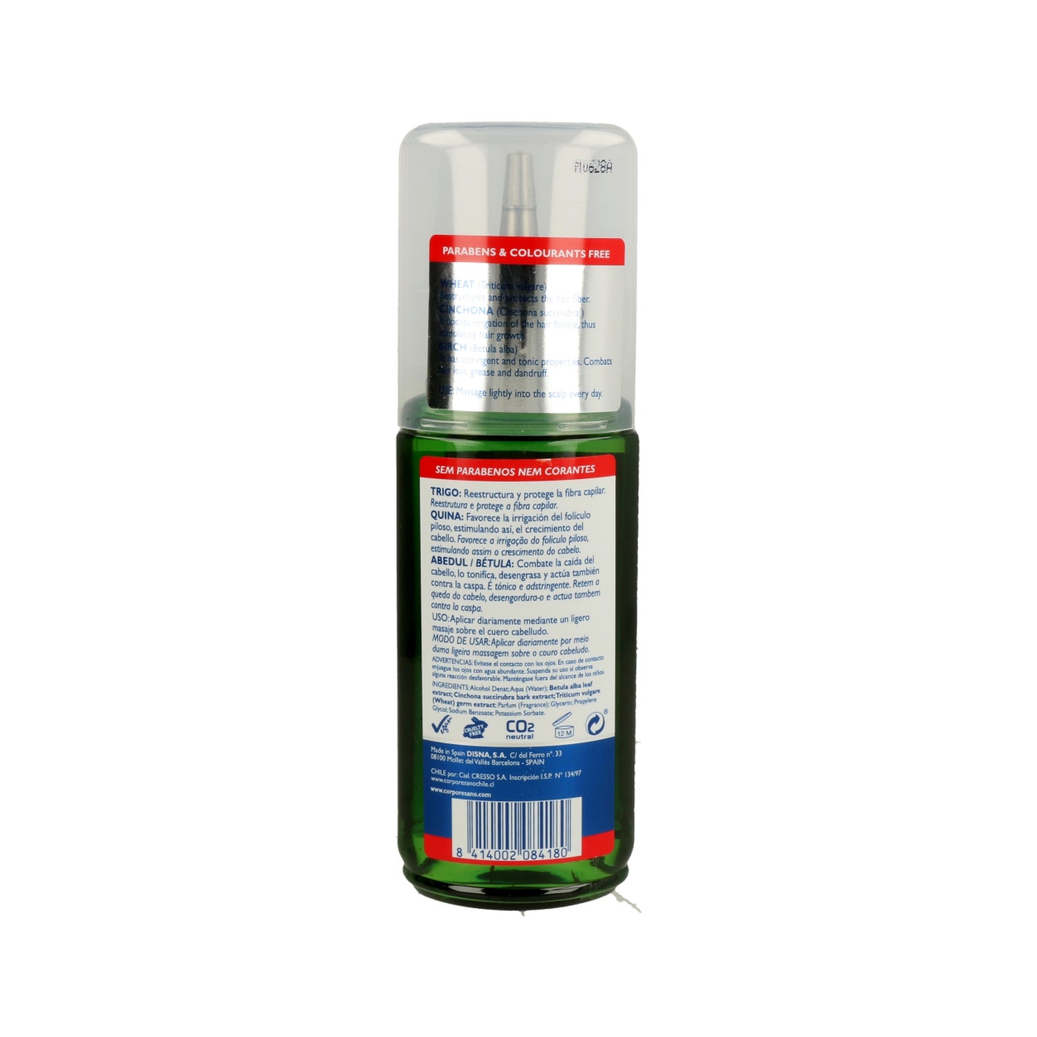 Tónico capilar fortificante em forma de spray, elaborado sem conservantes parabenos nem corantes e com gérmen de trigo, bétula e quinoa, que fornece proteínas, hidratos de carbono e lecitina rica em fósforo, especialmente concebido para cuidar e proteger o couro cabeludo em profundidade, retardando a queda e favorecendo o crescimento do cabelo, tonificando-o e proporcionando um efeito anti-caspa e desengordurante.