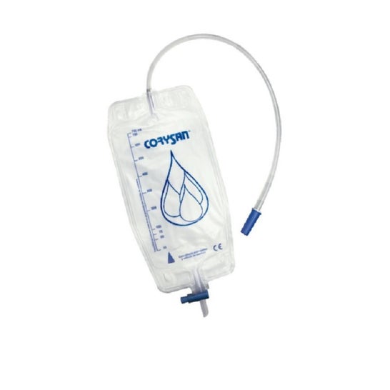 Corysan Bolsa de Urina para a Perna 750 ml 30 uds para coleta de urina diurna é uma bolsa para a coleta de urina de uso diurno, indicada para pessoas com incontinência urinária, mobilidade reduzida ou em pós-operatório.