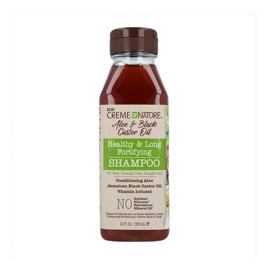 Creme Of Nature Aloe Ricino Negro Champô Fortificante 355ml é ideal para fortalecer e revitalizar o cabelo danificado, fraco ou tratado. Este champô combina as propriedades do aloe vera e do óleo de rícino negro, oferecendo uma limpeza suave que reforça a fibra capilar da raiz às pontas.