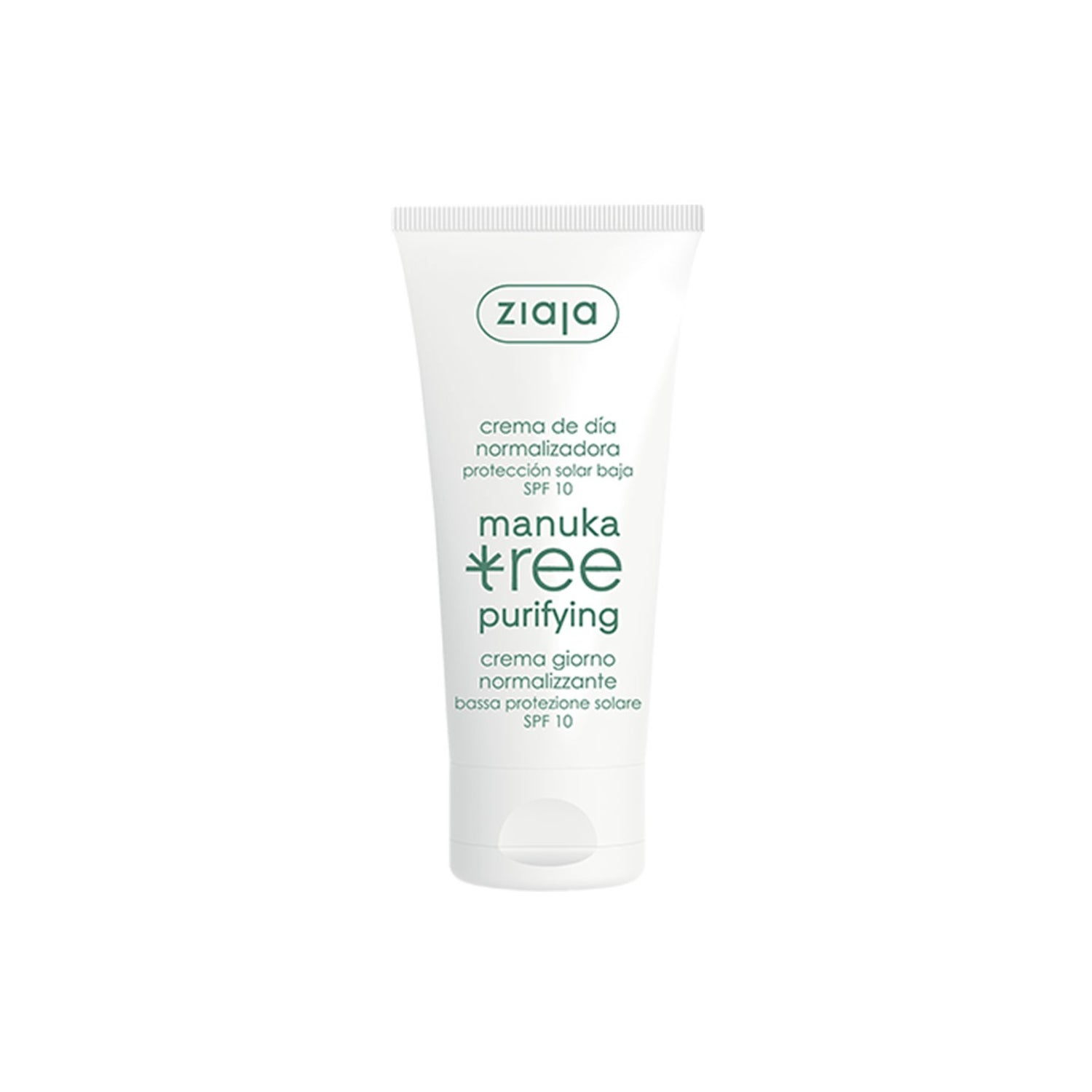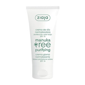 Ziaja Manuka Creme de Dia SPF10 50ml é um creme facial indicado para peles oleosas e mistas com imperfeições (poros dilatados, excesso de oleosidade, pontos negros e acne). À base de flor de árvore de chá com ação hidratante, anti-inflamatória e purificante para a pele. Contém extrato de folhas de manuka, gluconato de zinco, ácido oleanólico, sal de ácido hialurónico biodisponível, alga castanha, laminaria ochloreuca. Com filtros protetores contra raios UVA UVB.