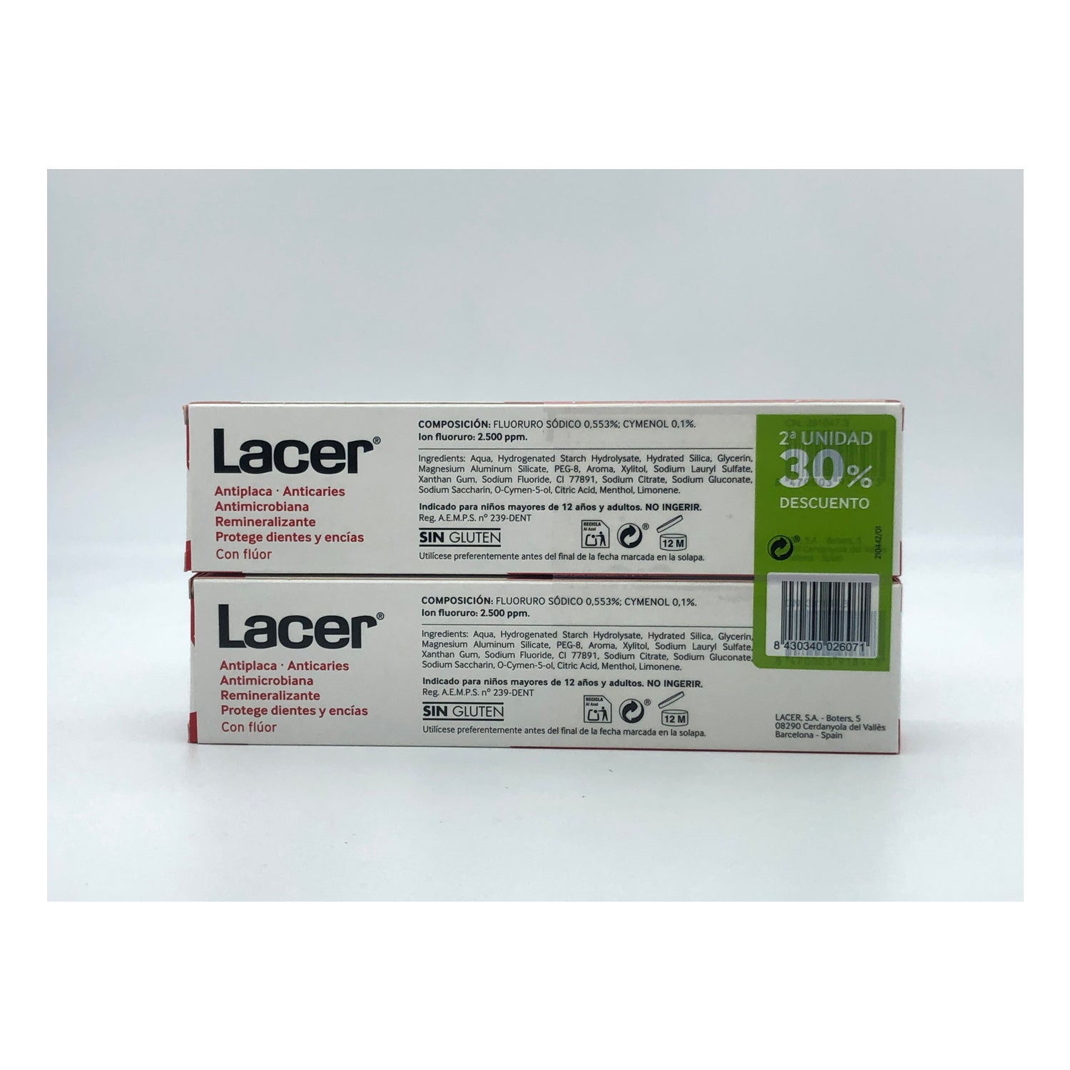 Lacer Toothpaste 2x125ml é uma pasta de dentes para adultos que ajudará a prevenir as cáries, a placa bacter iana e também protegerá as suas gengivas da irritação e da comichão.