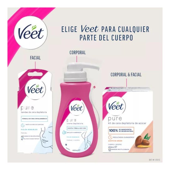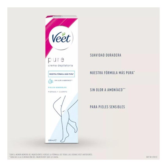 Creme de depilação Veet. Contém 200 ml de produto na embalagem. Este produto foi concebido para peles sensíveis. Mantém a pele hidratada durante 24 horas. Isto torna a superfície da pele suave. Cobre os pêlos desde a raiz, permitindo uma depilação profunda, sem irritação ou marcas. É fácil de aplicar e de retirar. A sua textura cremosa e suave é agradável ao tato. Recomendado para utilizadores com pele hiper-sensível. Ideal para pessoas que estão constantemente expostas ao sol e a outros agentes ambientais externos. Manter fora do alcance das crianças. Não é adequado para aplicação em pele infetada, irritada ou com feridas superficiais abertas. Em caso de reacções adversas às previstas, aconselha-se a consulta do médico ou dermatologista.