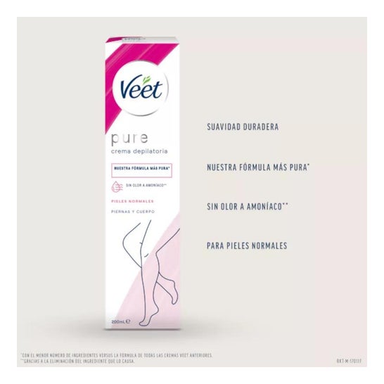 O creme Veet é ideal para peles normais. Proporciona até 1 semana de suavidade. Deixa a pele sedosa, suave e hidratada. Não provoca qualquer irritação. Tem um agradável aroma a jasmim. O produto está disponível em 200ml. A utilização constante do produto faz com que o cabelo cresça mais suavemente. Conservar o produto num local fresco e seco. Manter fora do alcance das crianças. Não exceder o tempo total de aplicação. Não utilizar diariamente.