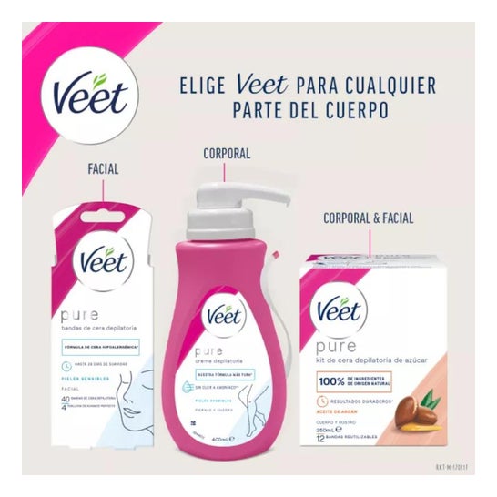 O creme depilatório Veet foi concebido para eliminar os pêlos do corpo sem provocar reacções adversas. Os ingredientes que contém são de origem natural. Não é agressivo para a pele e tem propriedades hidratantes. O produto é muito fácil de utilizar e elimina os pêlos desde a raiz.
