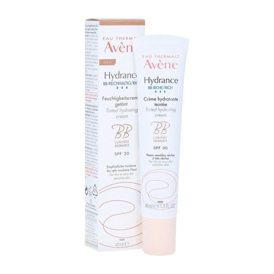 Avène Hydrance BB Rica Creme Hidratante FPS30 40ml é um creme BB que lhe proporcionará protecção solar e um toque de cor num único gesto.