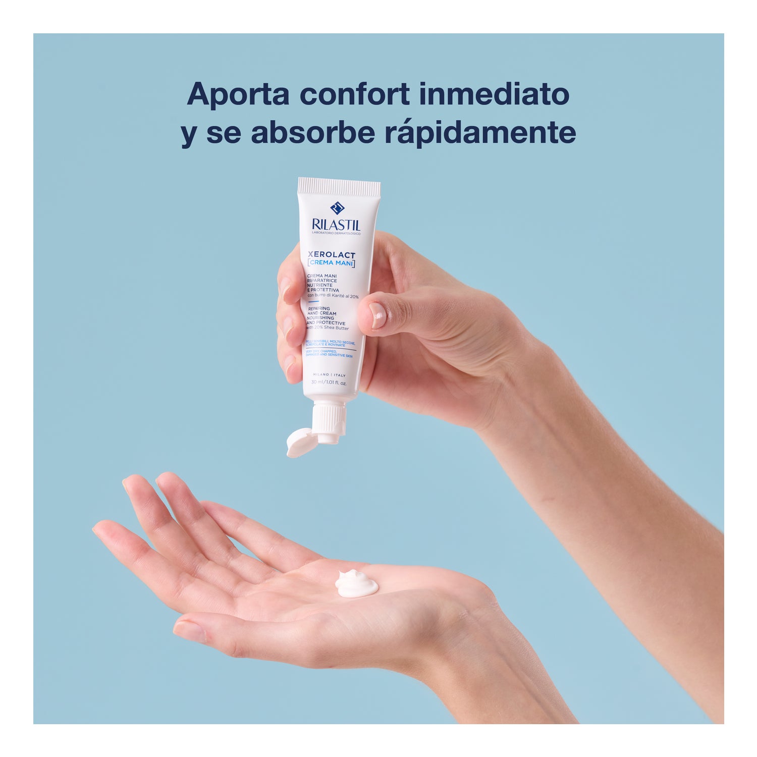 Rilastil Xerolact Creme de Mãos Reparador 30ml é um creme de mãos que ajuda a reparar e a hidratar a pele das mãos.