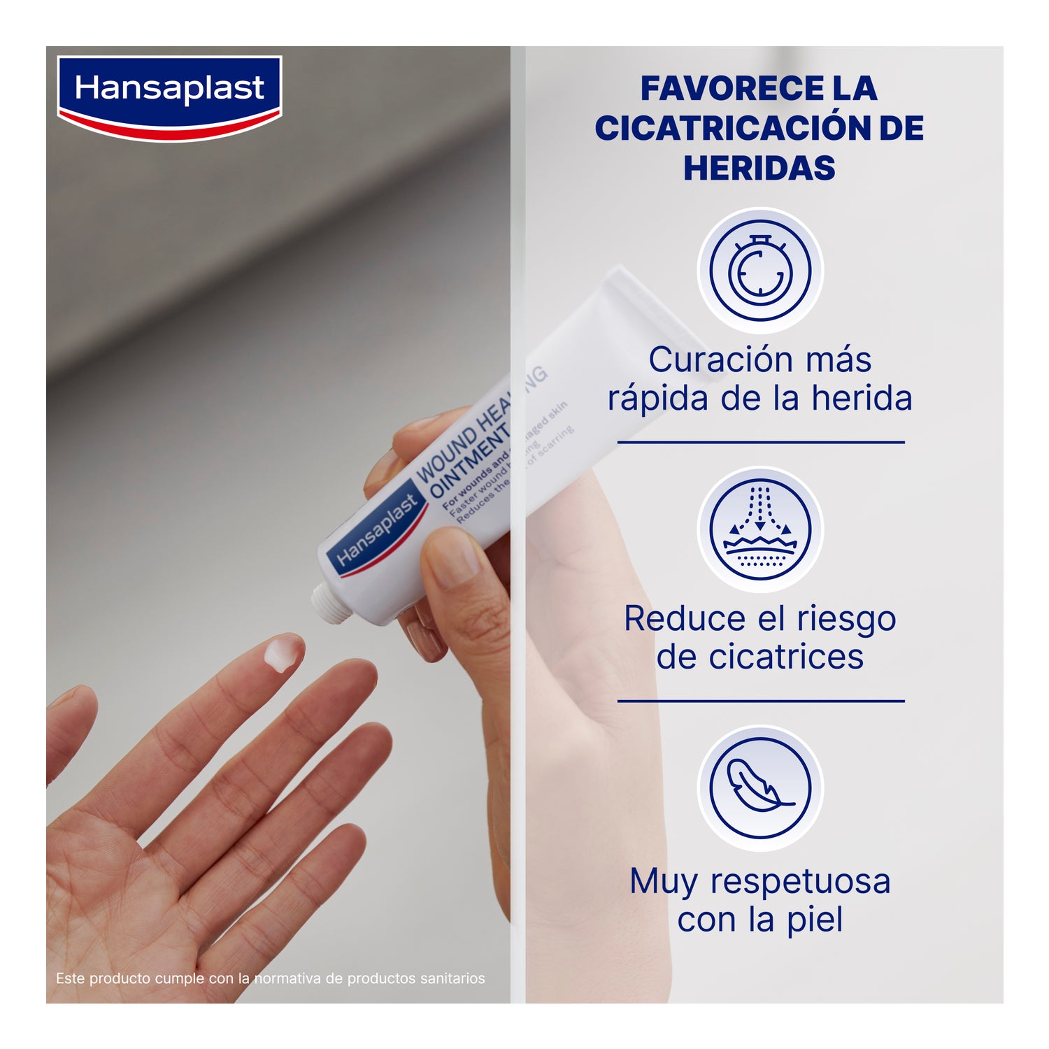 Hansaplast Wound Healing Ointment 20g é uma pomada que promove a cicatrização de feridas e da pele danificada.