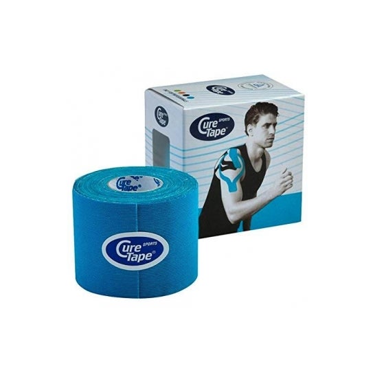 Cure Tape Sports Bandagem Azul Neuromuscular 5cmX5m 1ud é uma bandagem de cinesiologia que ajuda a promover a circulação sanguínea e facilita a oxigenação muscular.