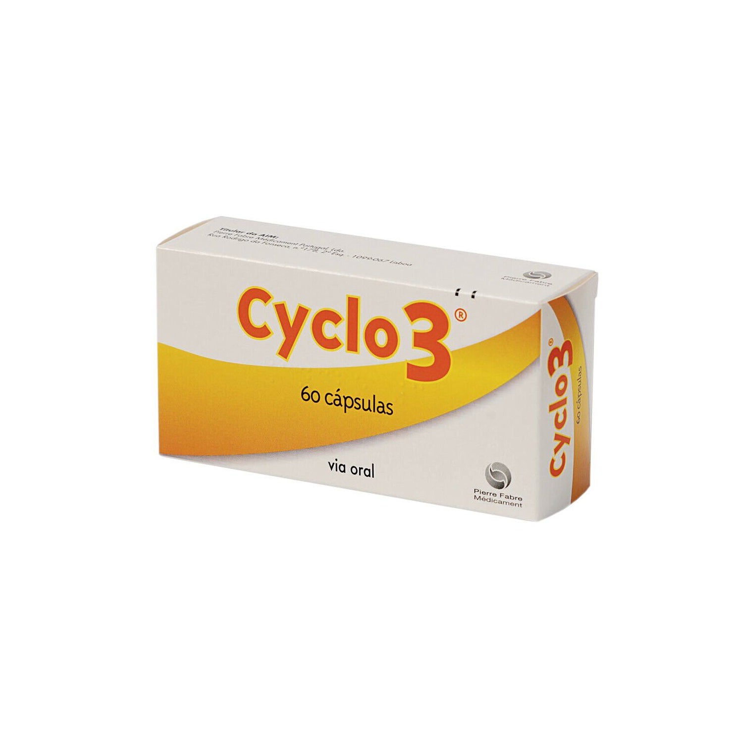 Cyclo 3 é um conjunto de 3 substâncias: extrato de Ruscus aculeatus, hesperidina metil chalcona e ácido ascórbico. Cyclo 3 pertence ao grupo de medicamentos designado por agentes estabilizadores capilares (sistema cardiovascular). Este medicamento é um agente venotónico e um agente protetor vascular (aumenta a tonicidade venosa e a resistência capilar e reduz a permeabilidade vascular).