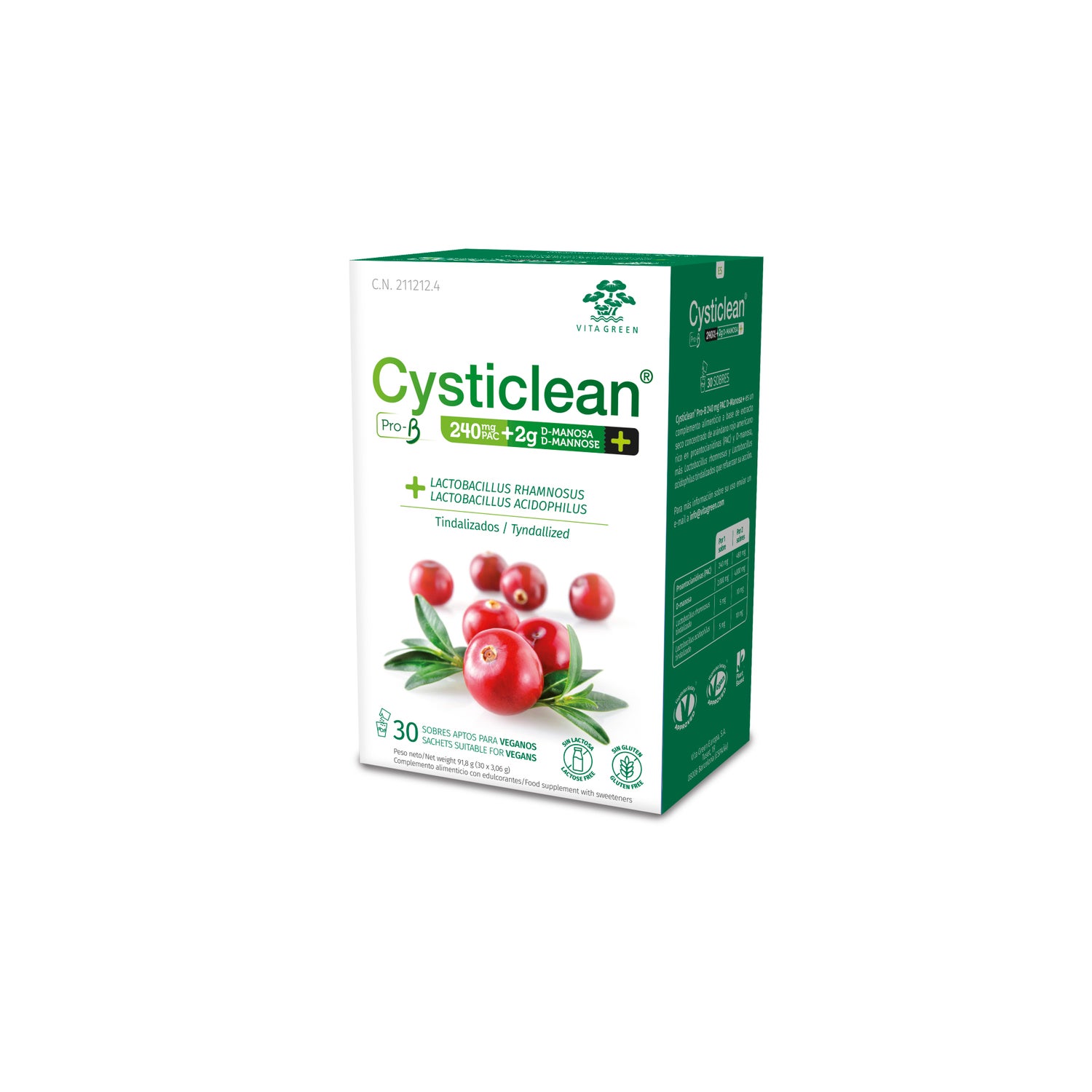 Cysticlean Pro-B D-Manosa 30 saquetas é um complemento alimentar para cuidar do trato urinário. Elaborado à base de extrato seco concentrado de arando vermelho americano rico em proantocianidinas (PAC) e D-manoza, mais Lactobacillus rhamnosus e Lactobacillus acidophilus tindalizados que reforçam a sua ação. Indicado para proteger o sistema urinário.