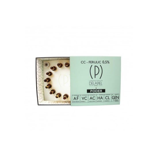 Delapiel Poder Ácido Ferúlico 15 ampolas são feitas de ácido ferúlico, ácido cítrico, calêndula, hamamélis e glicogênio marinho. Eles ajudam a reduzir a síntese de melanina e os sinais de envelhecimento, promovem a produção de colágeno e previnem o aparecimento de manchas na pele e a oxidação. Também actuam como anti-inflamatórios, encolhem os poros e removem o excesso de oleosidade da pele.