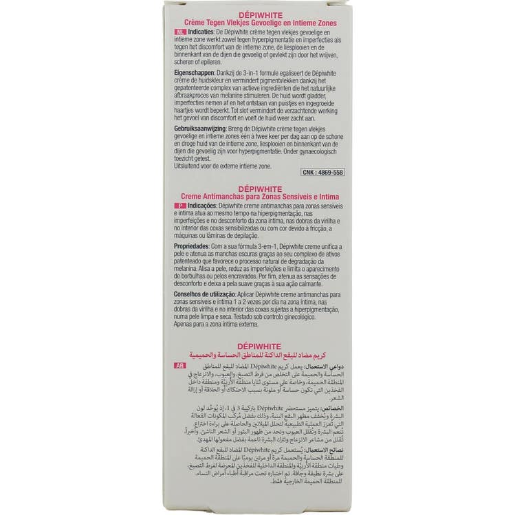 Depiwhite Creme Antimanchas Zonas Sensíveis e Íntimas 50ml é uma solução projetada para abordar a hiperpigmentação e as imperfeições em áreas delicadas. Este produto é especialmente eficaz em: